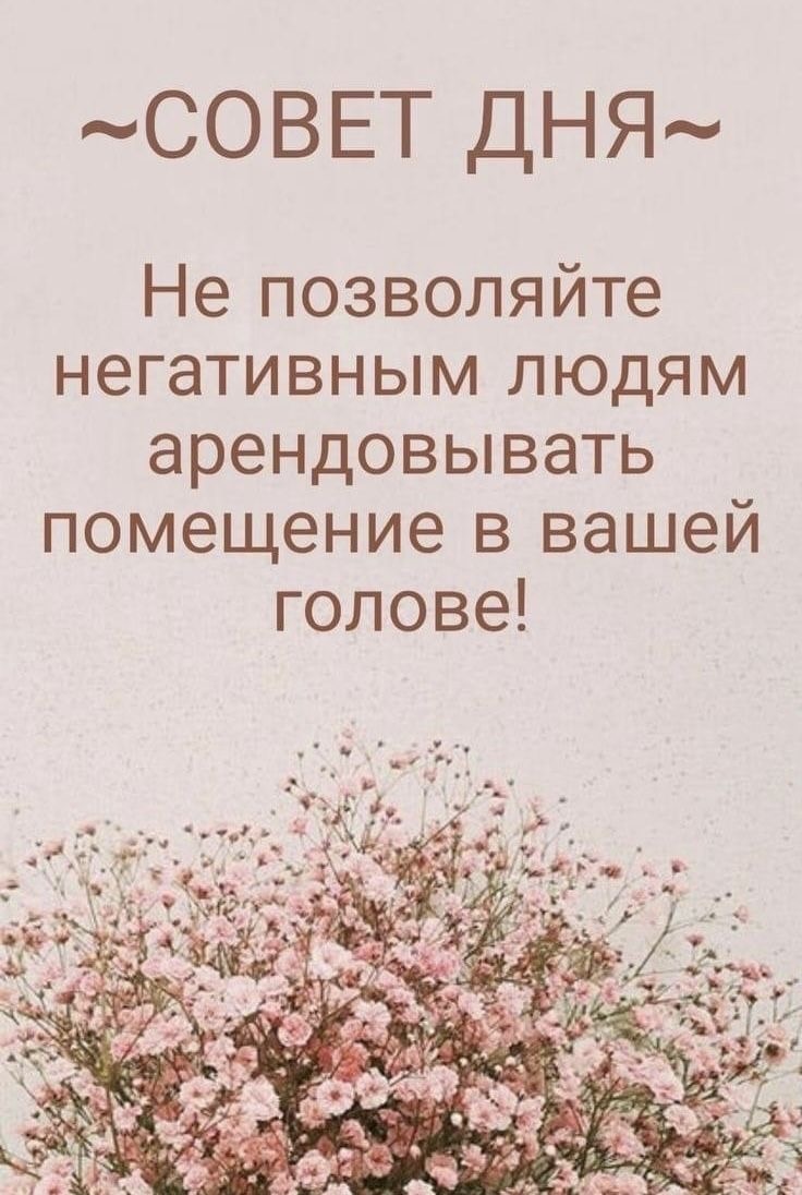 Доброе утро! ☀️ Сегодня — идеальный день, чтобы выселить всех негативных людей из своей жизни! 🚫 Не позволяйте им арендовать место в ваших мыслях, тратить вашу энергию и портить настроение. Жизнь слишком коротка, чтобы терпеть токсичность, сплетни и вечное недовольство. 🔒 Вы — хозяин своей реальности. Оставляйте только тех, кто вдохновляет, поддерживает и заряжает светом! Пусть этот день будет лёгким, ярким и свободным от всего, что тянет вниз. 🌈