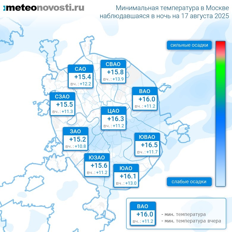 #за12часов #ночь Прошедшая ночь на 17 августа оказалась на 3.7°C теплее предыдущей