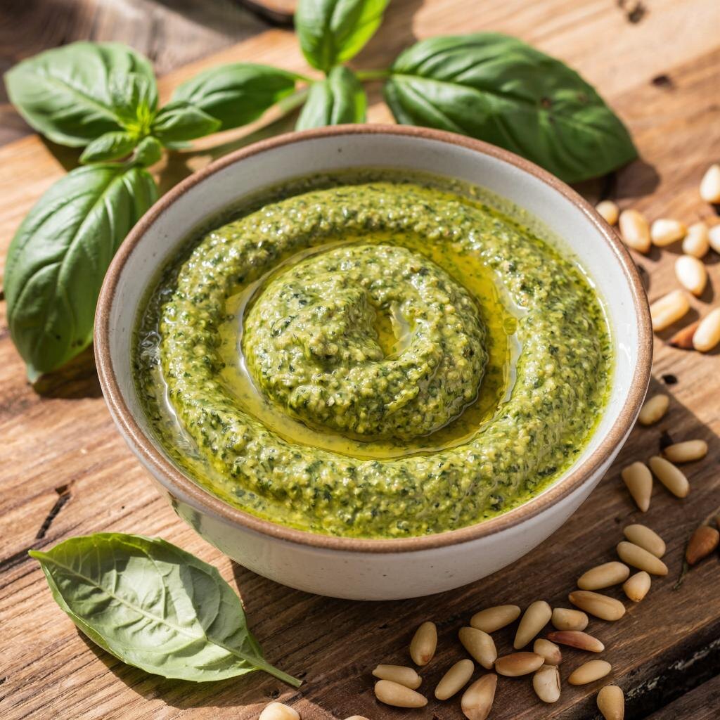 Соус песто — это традиционный итальянский соус родом из Генуи, обладающий насыщенным вкусом благодаря сочетанию базилика, оливкового масла, сыра пармезан, кедровых орехов и чеснока. Название "песто" происходит от итальянского глагола pestare ("растирать"), поскольку традиционно этот соус готовится путём растирания ингредиентов в ступке. Основные ингредиенты классического соуса песто: - Свежий зелёный базилик (листья) - Оливковое масло первого холодного отжима - Сыр Пармезан (Parmigiano Reggiano) - Кедровые орехи (пиниоли) - Чеснок - Морская соль Как приготовить классический соус песто? Ингредиенты: - Листья свежего базилика — около 2 больших пучков - Оливковое масло extra virgin — примерно 70–80 мл - Тёртый сыр Пармезан — около 50 г - Кедровые орешки — 2 столовые ложки - Зубчик чеснока — 1 крупный зубчик - Молотый морской соли и свежемолотый чёрный перец — по вкусу Приготовление: 1. Промойте листья базилика холодной водой и обсушите бумажным полотенцем. 2. Положите очищенный че