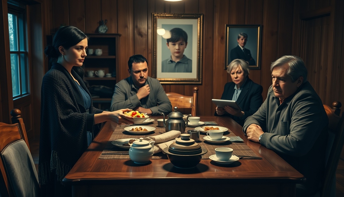 Мы прошли в дом. Я здесь была всего пару раз — когда Андрей болел гриппом, и я приносила ему суп. Теперь всё выглядело по-другому. На столе стояли два чайных сервиза — явно он готовился заранее. На стене висели фотографии, которых я раньше не замечала. На одной — мальчик лет десяти с серьёзными глазами.