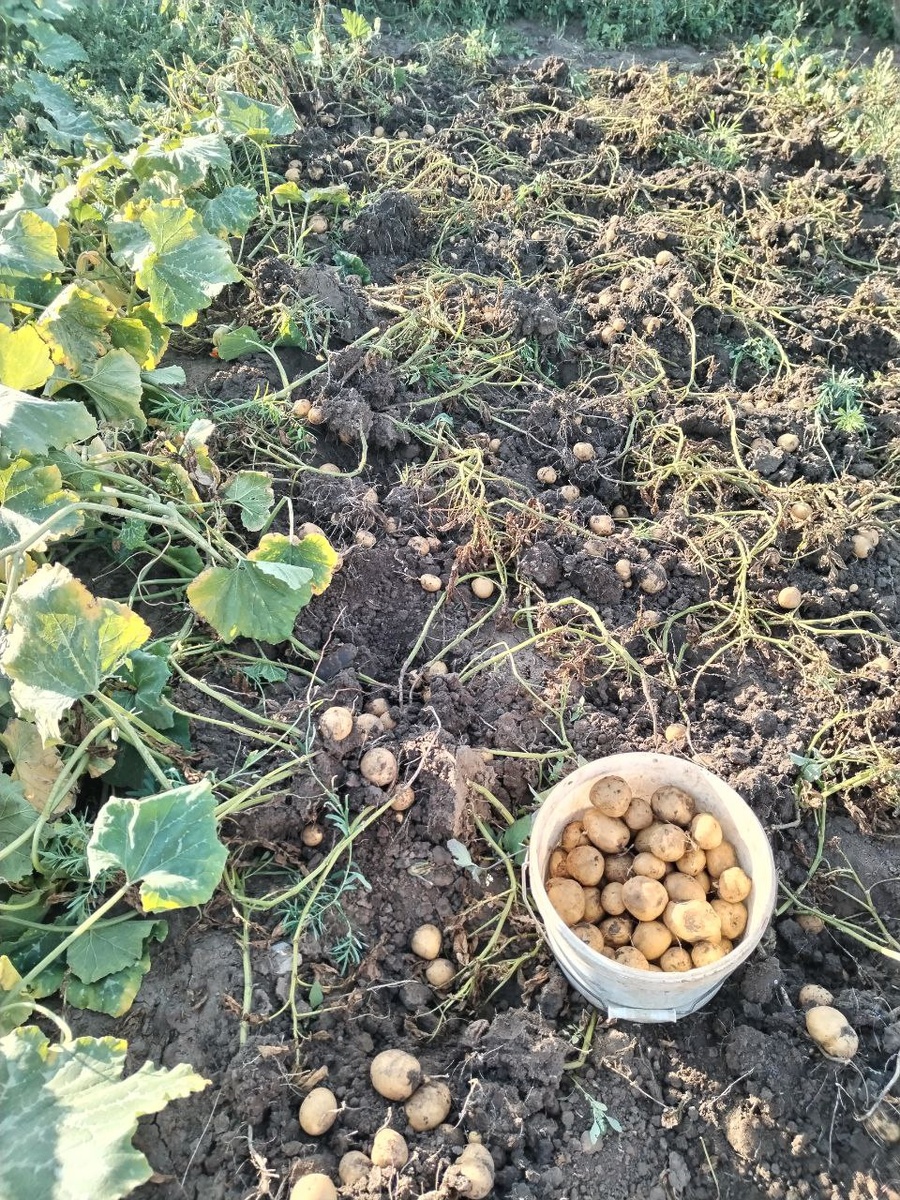 Докопали картошку. Она не крупная, но ее много. Вся средняя, ровненькая. Посадили 6 ведер. Выкопали 28 и 4 мелкой. Очень хороший результат. Семена покупала. Сорт Гала. Я желтенькую люблю😊. Теперь ждем помидоры🙏