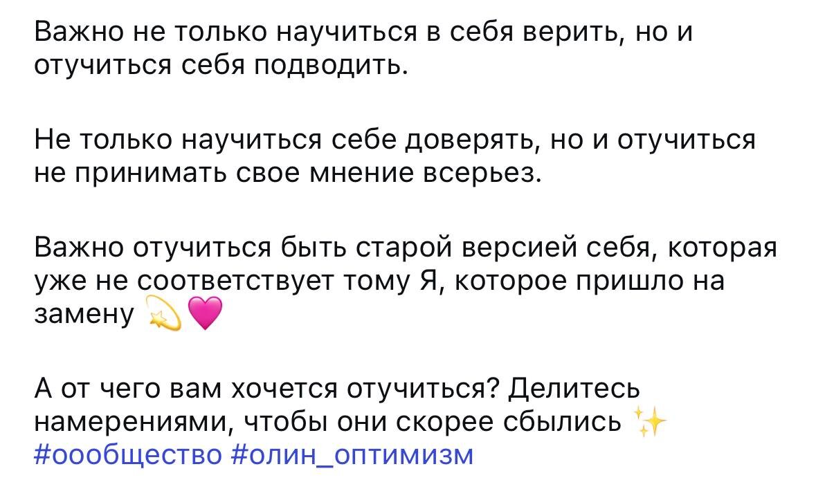 Одна мысль, которая ОЧЕНЬ мощно меняет жизнь! 💬 Я напомню вам её и буду напоминать регулярно 🙏 Потому что это правда опорная мысль, которую нужно прожить и прочувствовать. Вот она ⤵️⤵️⤵️ «Важно не только то, чему мы учимся. Важно то, от чего мы стараемся отучиться» Поразмышляйте об этом на досуге… ☕️✨💚