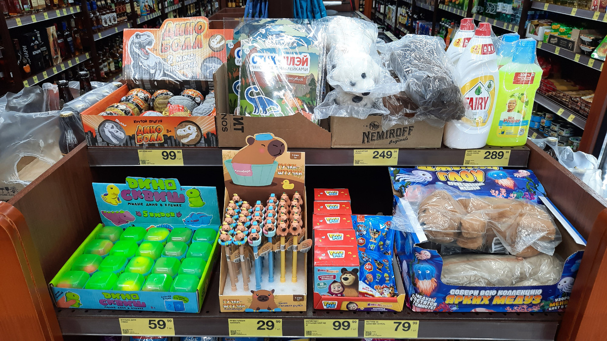 Всех приветствую, мои дорогие друзья и подписчики. Покажу вам новые игрушки. И посмотрим цены со скидкой на спиртное. Магазин находится по адресу Ростовская область, Зерноградский район, станица Мечётинская, улица Ленина, 27 Игрушка «Дино сквиш» цена 59.99 рублей. С первого взгляда привлекает внимание своей необычной формой и яркими цветами. Дино изготовлены из термопластичной резины, поэтому их можно тянуть во все стороны: за хвост, лапы или шею. Игрушка отлично подходит для игр, тренировки пальцев и снятия стресса. Динозавры компактны и удобны в хранении — каждый упакован в собственный контейнер в виде кубика. Это позволяет брать их с собой куда угодно. А также они легко поместятся в карман или пенал и всегда готовы спасти день от скуки или напряжения. Можно взять в школу, на работу или положить в машине, чтобы всегда было, чем заняться в пробке. Крутой прыгун Дино Болл цена 99.99 рублей. Устрой весёлую игру с суперпрыгучим мячиком — «Дино Болл»! Благодаря оригинальному дизайн