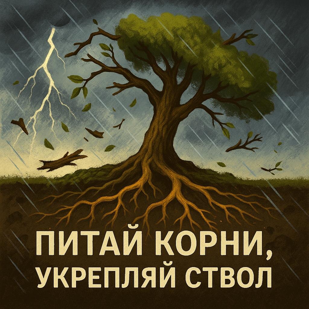Что остаётся, когда планы рушатся? 🌳 Вчера думал о том, как быстро устаревают стратегии. И вспомнил дерево во дворе детства. Каждую зиму на него обрушивались бури. Листья опадали. Ветки ломались. Ствол гнулся так, что казалось — сломается. Но весной оно снова зеленело. 💭 И тогда понял: Дерево выживает не потому, что сопротивляется буре. А потому, что знает, что можно потерять, а что — никогда. 🌪️ Во время урагана: Листья опадают — мелкие планы отменяются Ветки ломаются — стратегии рушатся Ствол гнется — характер адаптируется Корни держат — ценности остаются После бури дерево не жалеет о сломанных ветках. Оно радуется, что корни целы. ⚡ В жизни то же самое: Планы могут рухнуть — это листья. Проекты могут провалиться — это ветки. Обстоятельства могут измениться — ствол согнется. Но если корни крепки — ты выстоишь. 🎯 Что такое "корни"? Твои ценности. За что ты готов сражаться. Твоё призвание. Ради чего ты просыпаешься. Твоя вера. Во что ты веришь безусловно. Эти вещи не