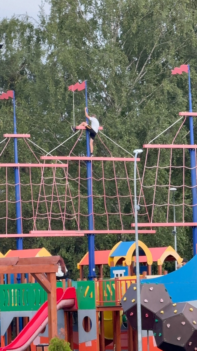 В Новочебоксарске дети залезают на самый верх игровой площадки в детском городке у Школы искусств