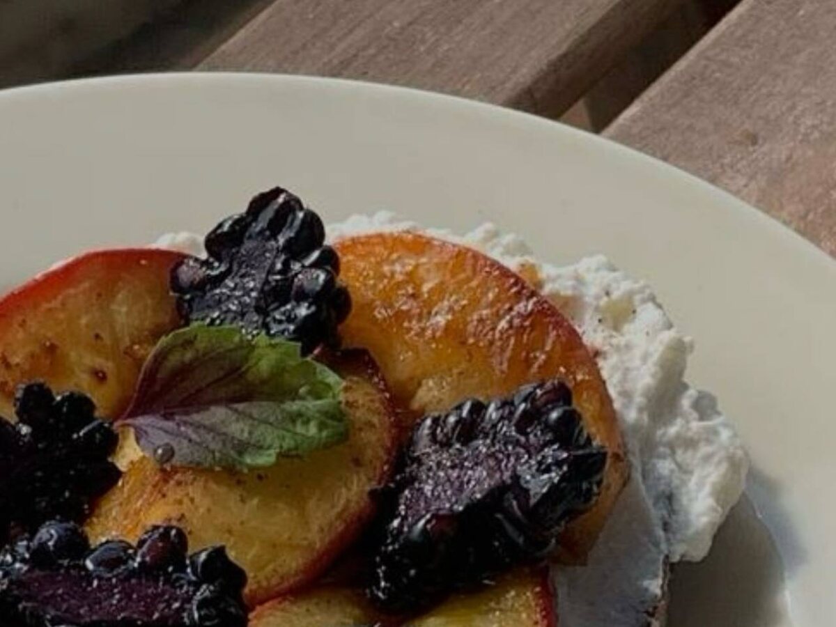 Сегодня у нас на завтрак — тост, который сам по себе как маленькая галерея вкусов. Тёплый хлеб, нежная рикотта, карамелизированный персик с медом и кардамоном, а сверху — свежая ежевика. Простое сочетание, которое превращает обычное утро в эстетичный ритуал. Можно немного поиграть с фруктами: персик заменить грушей, яблоком или инжиром, ежевику — на малину, чернику или виноград, а кардамон — на корицу или ваниль. Нарежьте фрукты дольками, слегка обжарьте их на сливочном масле с медом и специями. Подрумяньте хлеб, намажьте рикоттой, выложите тёплые фрукты и украсьте ягодами. Наливаем любимый утренний напиток и наслаждаемся