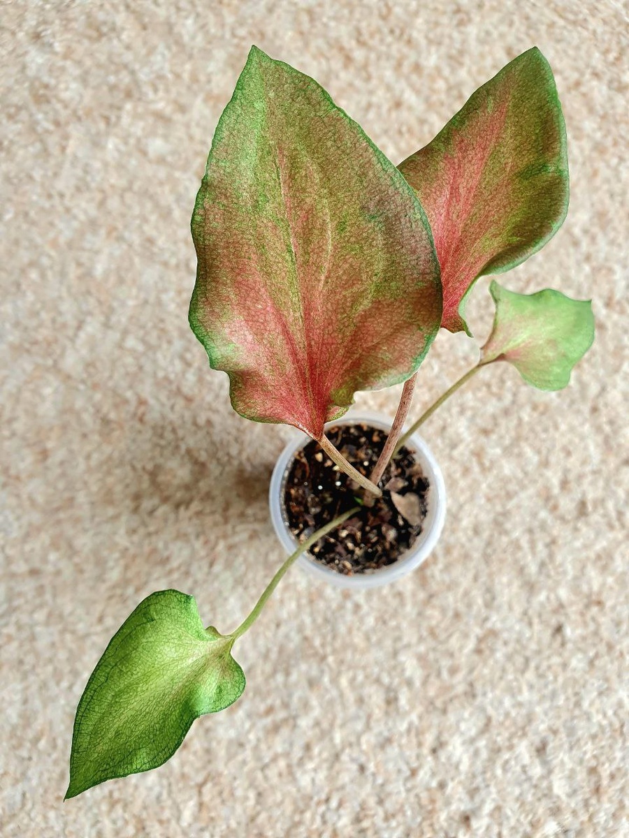 Растёт, старается малыш Каладиум Биколор Фламинго 🦩 Каждый новый листочек выразительнее предыдущего!