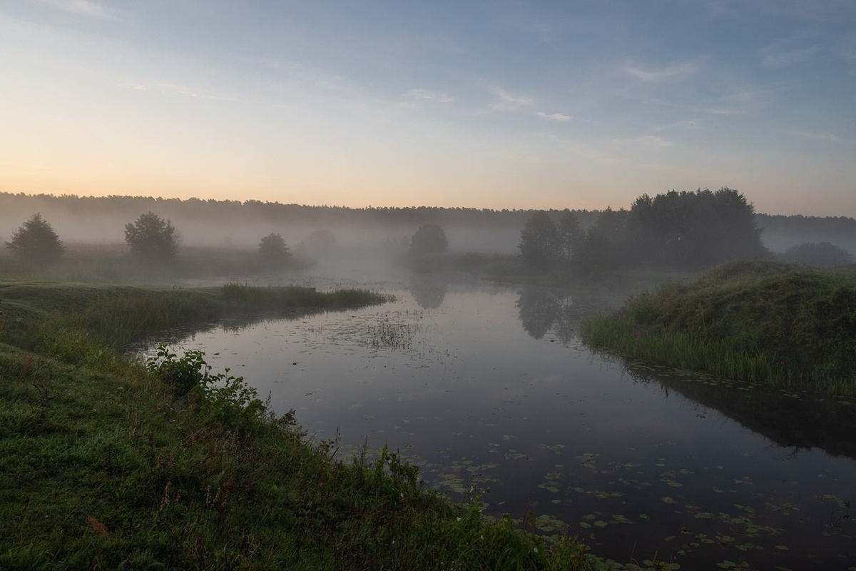 Туманное,летнее утро на речке Буянке. Окрестности д.Святье. 16 августа 2025г.