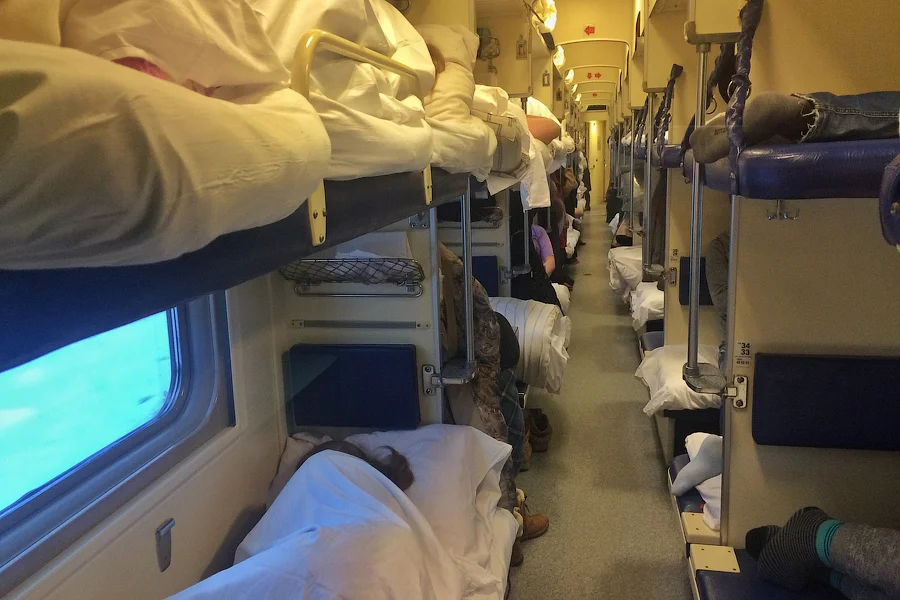 Дальше в статье пассажиры нахваливали боковые места: «можно увидеть всю страну», «удобно для пар, которые берут два места», «можно отгородиться простыней». Здесь тоже все красиво звучит. Но когда ты на верхнем боковом у туалета, увидеть страну сложно – в окно не сверху особо не посмотришь. Простыня? Я пробовала повесить, но она не держалась. В итоге уединения не получилось.