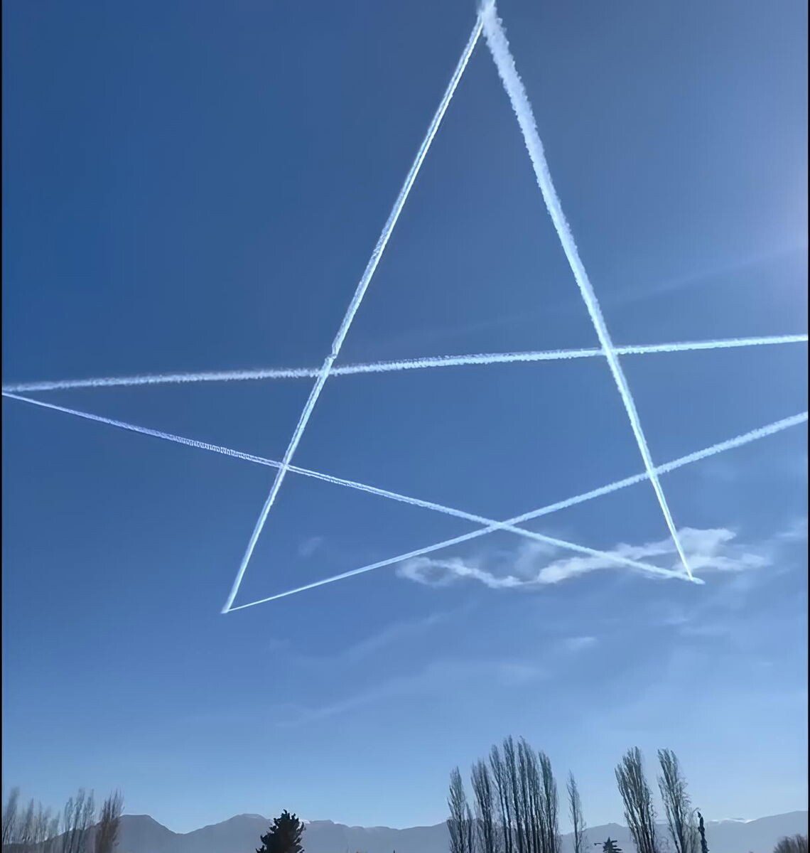 Американские F-22 «исполнили» звезду в небе после прилёта широкофюзеляжного Ил-96-300