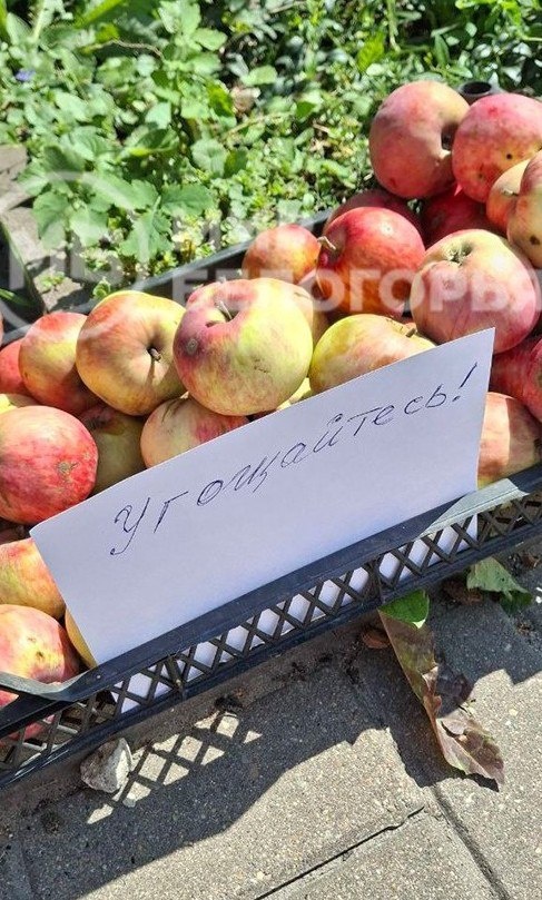 Наша подписчица заметила коробку с яблоками и надписью «Угощайтесь»