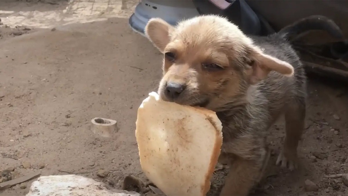 Щенок протянул спасателям свой единственный кусочек хлеба