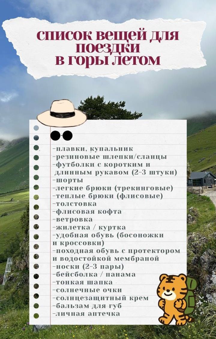 Друзья, вот что рекомендую брать с собой, чтобы путешествие было комфортным. Горы ждут! Твой гид, Тамара #гидтамара #кбр #турыпокавказу #эльбрус #горы #северныйкавказ