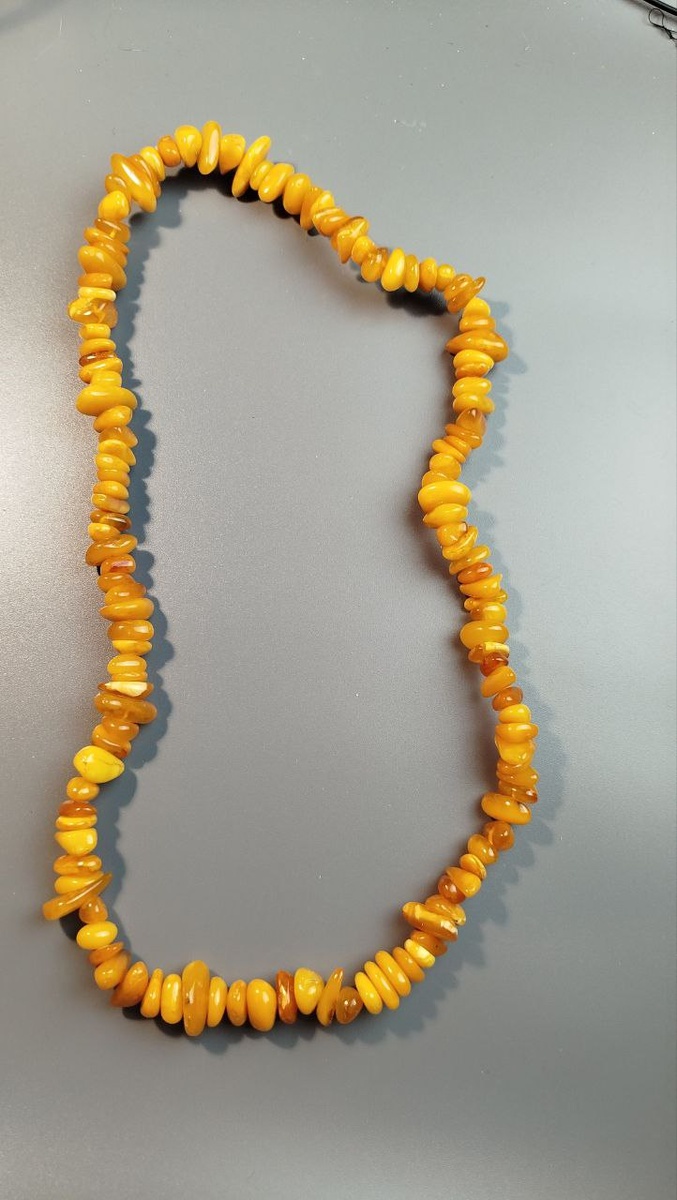 Приветствую Вас, дорогие мои читатели! Сегодня хочу с показать вам простой способ установки винтового замка на бусы через узелок. Попали ко мне в руки янтарные винтажные бусы. Производство Янтарного комбината конец 80-х начало 90-х годов. Нитка примерно 65-70 см без замка из крупных пейзажных бусин (или как еще называют такой янтарь «королевский»). Янтарь со временем немного окислился и потемнел, то есть бусины стали более желтыми, а не белыми, как раньше. Но сохранился блеск. Нитка очень туго собрана. На фото видно, как лежат бусы. Это не я их так выложила, это они вот так «колом стоят». Носить такие бусы явно неудобно. Я хочу эти бусы пересобрать через узелок, установить замок. Весь процесс сборки покажу в этой статье! Итак, приступим. Распускаю бусы. Некоторые бусины имеют сколы на поверхности, убираю их. Так же много очень крупных бусин. На мой взгляд они грубо смотрятся. Отложу их в сторону, использую потом в других изделиях. Возьмем плотную синтетическую нить из полиэстра. Для