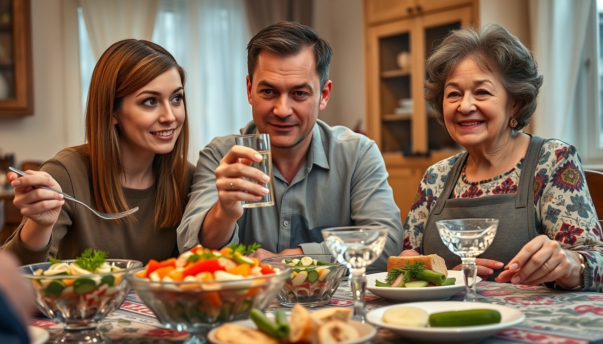 Мама улыбнулась, расправляя скатерть с огурчиками — ту самую, что стелила на все праздники последние десять лет. Сестра поставила на стол горячую сковороду, пар поднялся к потолку, смешался с запахом печёной картошки.