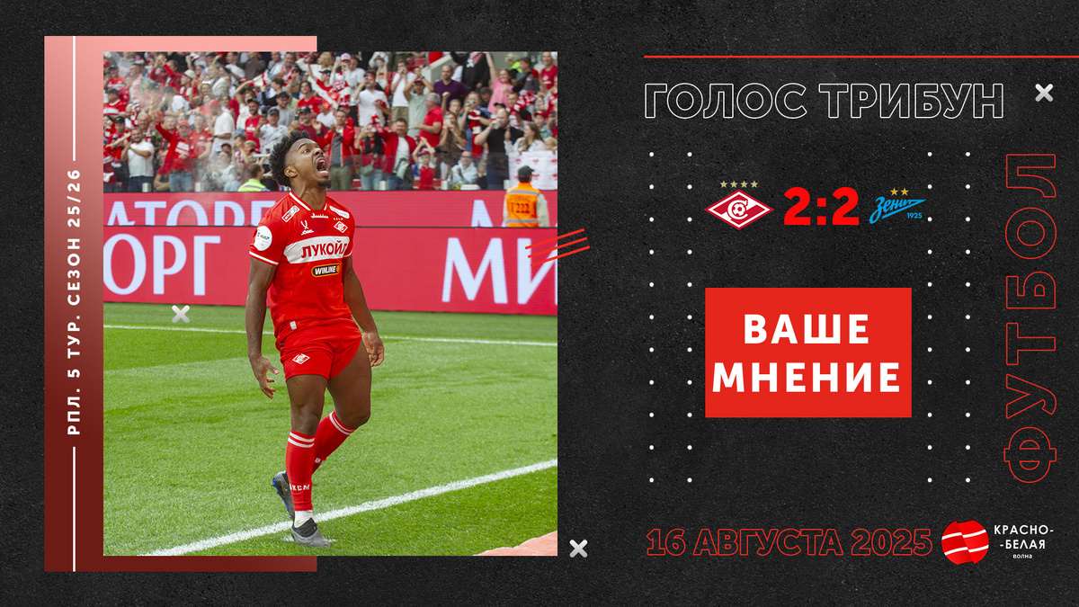 Вчера в матче с «Зенитом» красно-белые упустили победу над принципиальным соперником. Если первый тайм «Спартак» доминировал, и несмотря на быстро пущенный гол с пенальти, смогли забить два. Игра напомнила прошлую домашнюю против «Зенита», когда красно-белые показывали отличную форму, создавали моменты. Был виден настрой. Почему команда не может настраиваться так на каждый матч? Думаем, что судейство Артема Чистякова еще будут обсуждать на берегах Невы. Сергей Семак на пресс-конференции сказал, что вторая желтая карточка Дугласу Сантосу была показана не правильно. Хотя все справедливо. Вот только «Спартак» не воспользовался численным преимуществом на поле и не забил третий, а наоборот пропустил. Тут вопросы и к защите и голкиперу Максименко. Ближний угол - вратарский. Да, Саша сделал пару хороших сейвов, но в нужный момент не спас. Не правильно пробитый пенальти Барко омрачил вечер. Жедсон Фернандеш был признан игроком матча и не зря. Есть потенциал у этого футболиста. Следующая игра