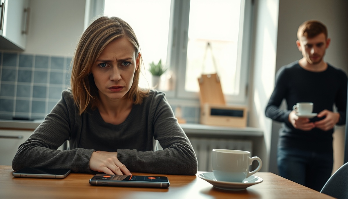 Телефон вибрировал на столе рядом с недопитым кофе. Я потянулась к нему, не отрываясь от экрана ноутбука, и случайно коснулась не того места — вместо «Сообщений» открылся «Диктофон». В списке записей появился новый файл: AUD-20241216-194237.m4a, длительность 2:17. Я не помнила, чтобы что-то записывала сегодня. Красная точка замерла на паузе, а рисунок звуковой волны застыл неровными пиками. Я нажала play.