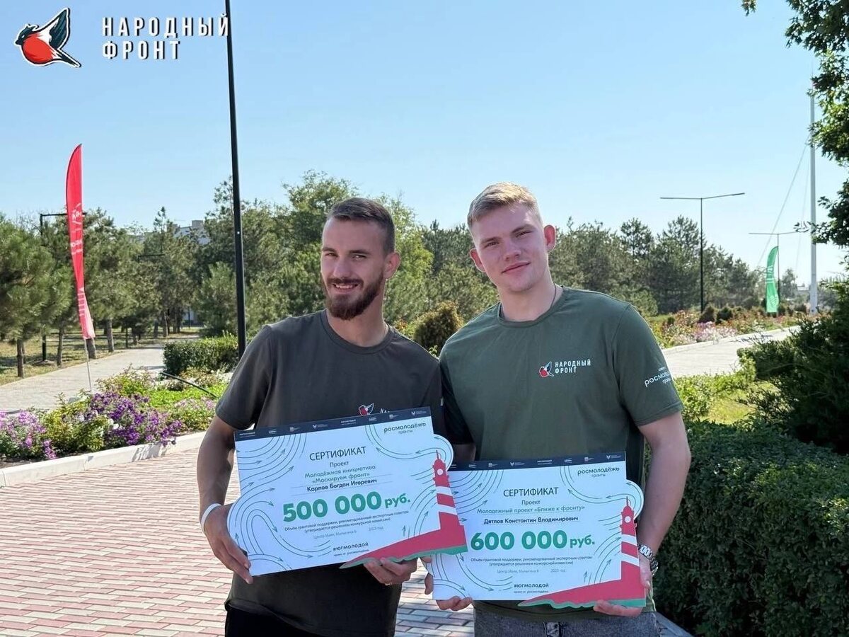 Гордимся 💪 Активисты Молодёжки Народного фронта Республики Крыма получили грантовую поддержку проектов на Всероссийском форуме «Юг молодой»! Поздравляем: 🎉 Константина Дятлова с проектом «Молодежный проект «Ближе к фронту» 🎉 Богдана Карпова с проектом «Молодёжная инициатива «Маскируем фронт» Благодаря поддержке ребята скоро начнут проводить обучение по тактической медицине и мастер-классы по плетению маскировочных сетей. Спасибо вам за такие важные инициативы! #Госкоммол #МолодёжьКрыма #МолодёжкаНФ #Росмолодёжь #РосмолодёжьГранты #РегионДляМолодых #РДМ