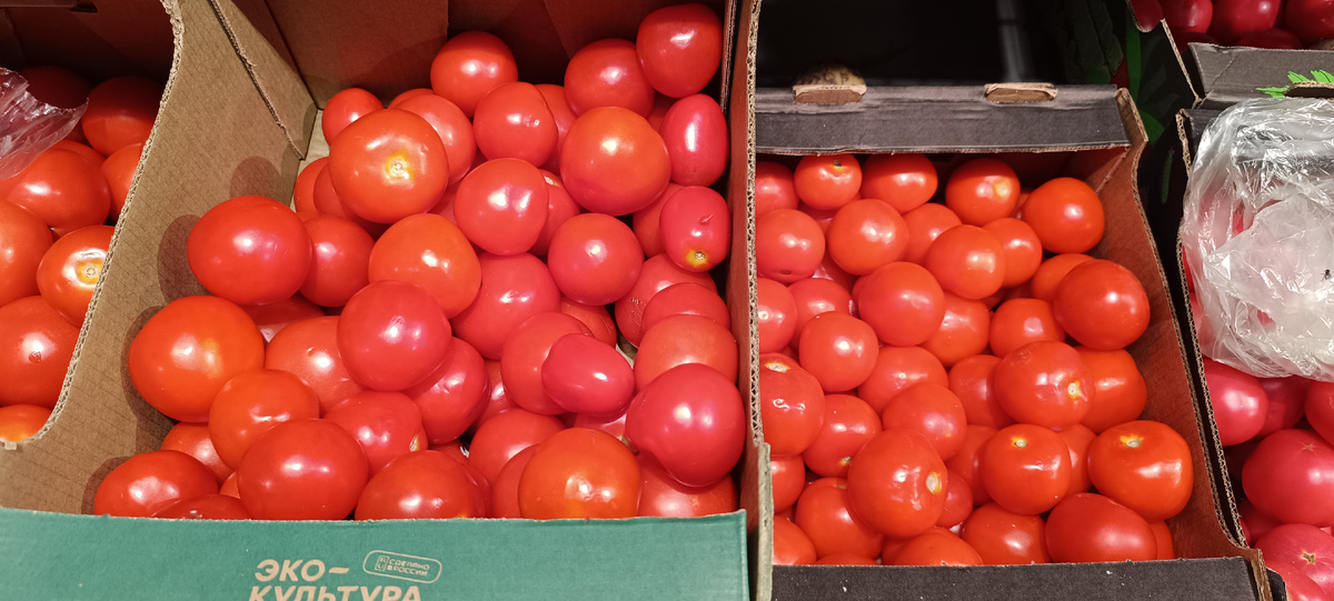 Идём в ближайший супермаркет и набираем нужные ингредиенты, мы пошли в магнит первым делом набираем помидоры . Мы взяли 5 кг по 105 рублей за кг, вышло 526 рублей.