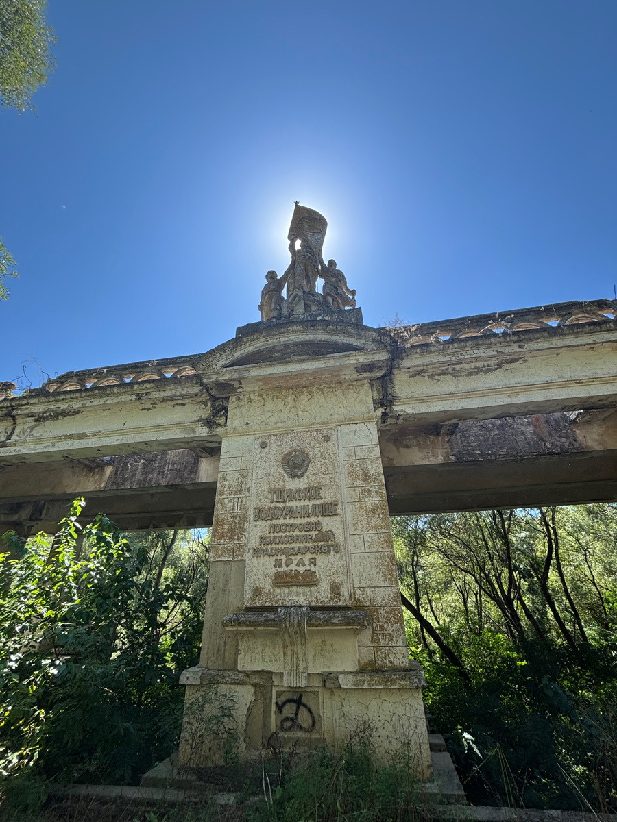 Сегодня наконец-то добралась до самой монументальной заброшки в Крае. Водосброс Тщикского водохранилища. 1940 год постройки.👍 Возвели его в кратчайшие сроки -всего за 8 месяцев 64 тысячи рабочих! Невероятное строение, конечно, для просто какого-то водосброса! Водосбросное сооружение представляло собой монолитную железобетонную водосливную плотину с пролетами 10 м каждый. Барельефы и сами скульптуры отлично сохранились за 85 лет! Учитывая в каком месте они «стоят». После постройки Краснодарского водохранилища, надобность в Тщикском водохранилище попросту пропала. И с 1975 года все здесь заброшено. (( С двух сторон этого монументального строения вот такие Стеллы с изображением рабочих. В руках у них советский флаг с изображением Сталина и Ленина. Фото сверху взяла из интернета. К сожалению мне самой некуда было залезть, чтобы их сфотографировать )) Дороги к нему практически нет, к сожалению. Если бы присвоили статус памятника исторического наследия , как бы все изменилось, п