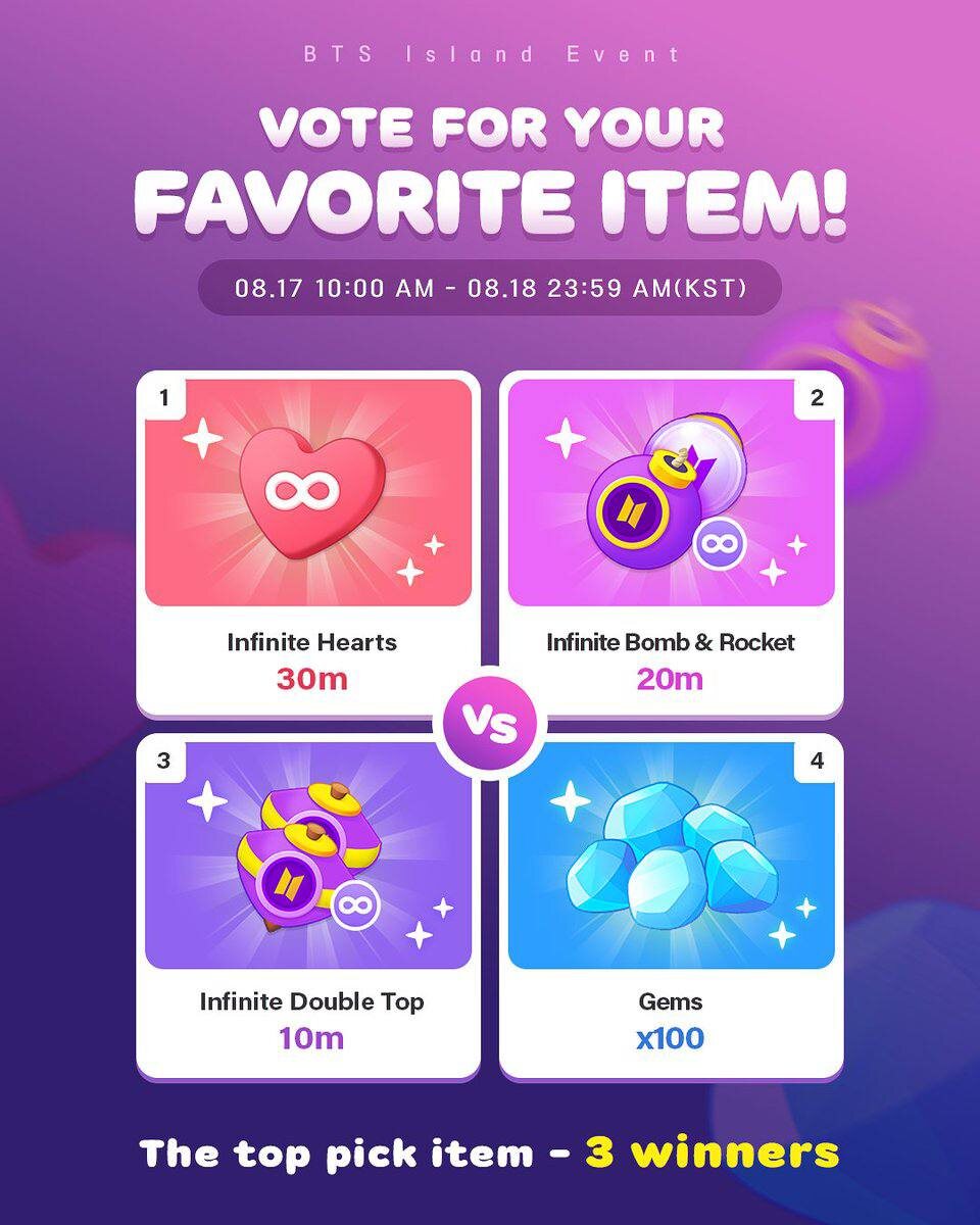 🍊 BTS Island In the Seom в X: 🗳️ Событие BTS Island в соцсетях. Проголосуйте за награду, которую Seomer хотят получить больше всего! 🧐 Оставьте в комментариях свой ник и желаемую награду, и награда, набравшая наибольшее количество голосов, будет подарена троим участникам! 🎁✨ Кстати, хранителю острова больше всего нравится любовь Seomer...💗 🏝 Ссылка на игру #InTheSeom @kumihobts