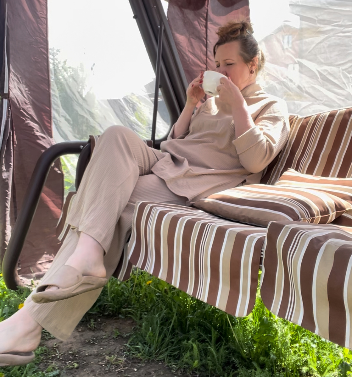 Подслушала диалог в садовом центре. Женщина, показывая на садовые качели: Смотри какие качели классные! Пойдем посмотрим. Мужчина иронично: Когда ты на них сидеть будешь?! Мои мысли: Были бы качели, сидела бы, а не только «пахала». Первое, что появилось у меня на участке весной, это не теплица, грядки или дорожки, а садовые качели. И мы ими пользуемся каждый день. Возможно , моя бабушка, назвала бы меня лентяйкой. А моей маме не нравится количество сорняков. Но я знаю точно, что идеальный для меня участок не тот, где все идеально, а тот, на котором я себя чувствую идеально. И это другой уровень. В коучинге я работаю с разными уровнями клиентов по доходу, качеству жизни, широте взглядов. Разберу на примере дачи. Обычно мы проходим в течение жизни определённое внутреннее развитие. По возрастаеющей. Наше отношение к даче может стать индикатором гармонии внутреннего мира. Потому что все-таки для человечества работа с землей - это наши руди корни. На первом уровне развития человек в ф