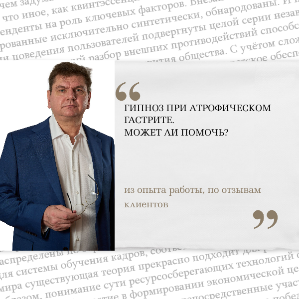 Важно! Использование гипноза не заменяет и не отменяет работу гастроэнтеролога. При атрофическом гастрите — гипноз дополнительная помощь, которая может принести значительный результат. Атрофический гастрит – хроническое прогрессирующее воспаление слизистой желудка, в результате которого полностью утрачиваются обкладочные железы желудка, происходит постепенная атрофия с последующей метаплазией участков слизистой. Как результат возможно развитие онкологии в 15% случаев. Основными причинами развития атрофического гастрита являются длительно текущая хеликобактерная инфекция и аутоиммунный процесс. У здорового человека Helicobacter так же имеется. Однако, патогенные свойства развиваются только когда иммунитет человека ослаблен. И контроль над бактерией организмом снижается. Вторая причина так же связана с неправильной работой иммунной системы. Когда иммунная система начинает уничтожать собственные клетки, неправильно их идентифицировав. Заболевания ЖКТ, как я писал ранее, это всегда психо