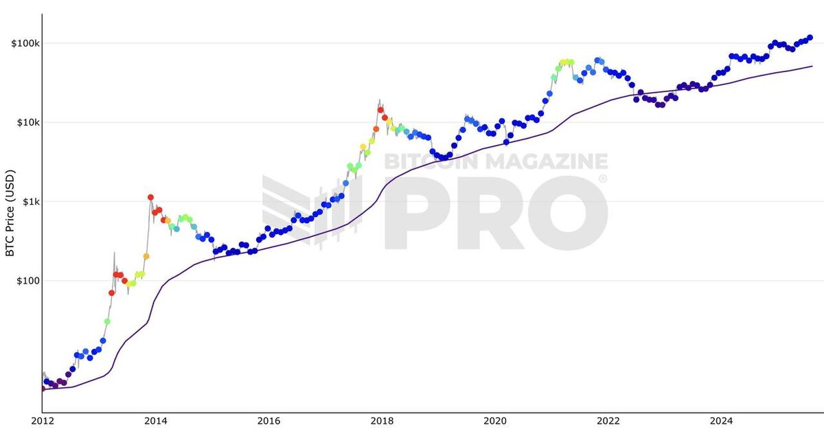200WMA: исторический уровень поддержки теперь на $51K 200-недельная скользящая средняя (200WMA) впервые в истории биткоина поднялась выше $51,000. Этот индикатор часто называют «последней линией обороны» бычьего тренда: за 12 лет цена BTC опускалась ниже 200WMA всего несколько раз — и каждый раз это было дно медвежьего рынка. Рост этой линии — знак того, что фундаментальная стоимость биткоина, рассчитанная через долгосрочную тенденцию, продолжает расти. Даже в случае глубокой коррекции инвесторы теперь будут смотреть на $51K как на ключевую опору. Ранее мы обсуждали, как 200WMA исторически указывает на зоны максимального апсайда для долгосрочных покупателей. Теперь планка поднята — и вместе с ней меняется сама «база» цикла. Хотите, разберём все прошлые касания 200WMA и что происходило с ценой в следующие 12–18 месяцев? Это поможет вам понять, как этот уровень может работать в текущем цикле. #Bitcoin #техническийанализ #инвестиции #крипторынок