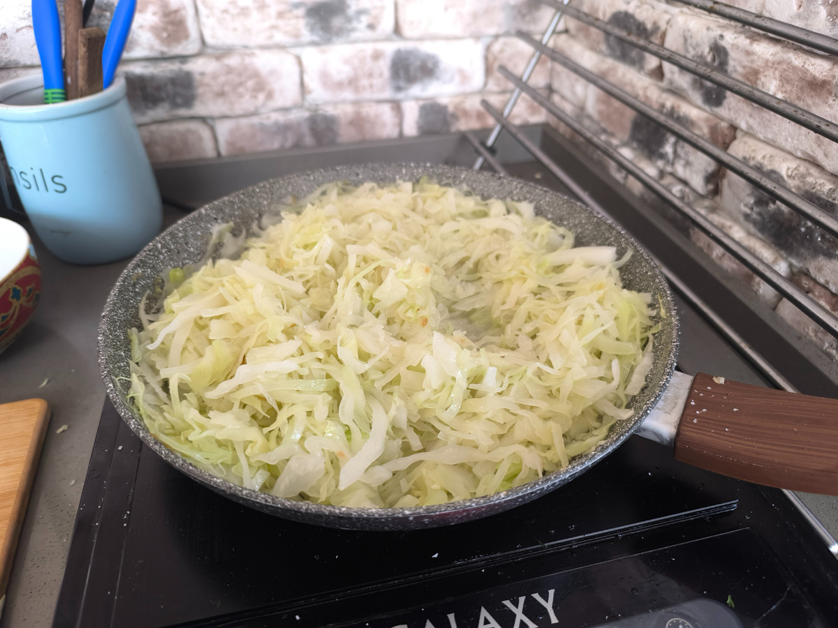 У британцев Sunday, именно так с заглавной буквы, это начало рабочей недели, хотя официально выходной. В этот день можно встать позже и выспаться. Но потом на расслабоне начать подготовку к рабочей неделе: приготовить полуфабрикаты или готовые блюда для заморозки, чтобы в течение недели был завтрак и ужин, постирать и погладить одежду, убраться в доме, чтобы в течение недели приходить в чистое. Да мало ли дел найдётся в воскресенье! И самое главное, воскресенье можно посвятить семье. Спала сегодня хорошо. Уснула тоже относительно быстро после двух часов сна вечером. Проснулась около восьми утра, сразу же встала и отправилась на веранду делать зарядку и пить горячую воду. Потом взялась за пирожки с капустой. Начинку готовила так, как это делает свекровь: капуста тушится с солью на растительном масле. Больше никаких добавок. Накануне в "Глобусе" купила тесто с уже сформированными шариками под пирожки. Быстро слепила пирожки И поставила на расстойку в тёплую духовку на несколько минут.