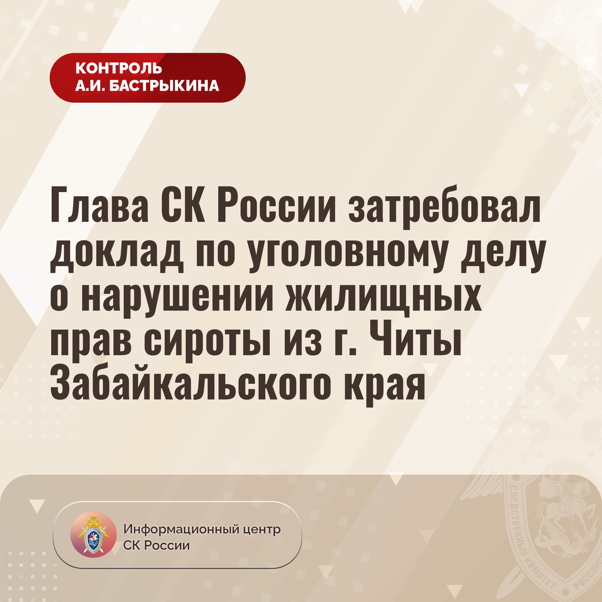 #СледственныйКомитет #СКРоссии #СКР #ИЦСКР #ИнформационныйЦентр #АлександрБастрыкин #ПредседательСКР #КонтрольПредседателяСКР #КомментарийКонтроль #ЗабайкальскийКрай