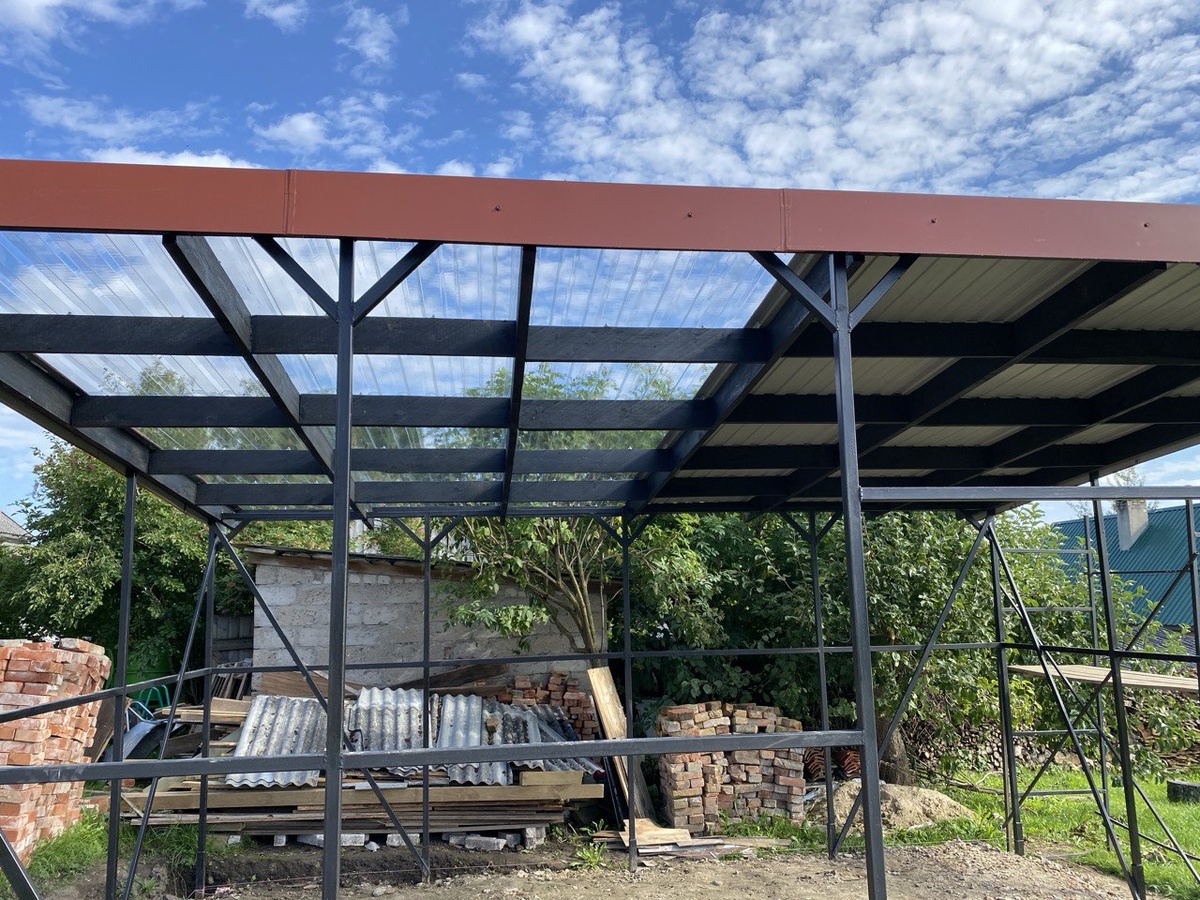 Наконец-то можем сказать это с полной уверенностью: крыша нашей беседки полностью готова и оформлена! 🙌 Дело в том, что мы не просто смонтировали крышу, а ещё и установили ветровую планку, которая завершает её внешний вид. Честно говоря, я никогда особо не любил профнастил — визуально он мне кажется слишком простым и грубым. Но выбора у нас не было. Поэтому мы решили пойти другим путём: сделать так, чтобы его максимально не было видно. И знаете что? Получилось отлично! Смотрим на крышу «в лоб» — и совершенно непонятно, из чего она сделана.