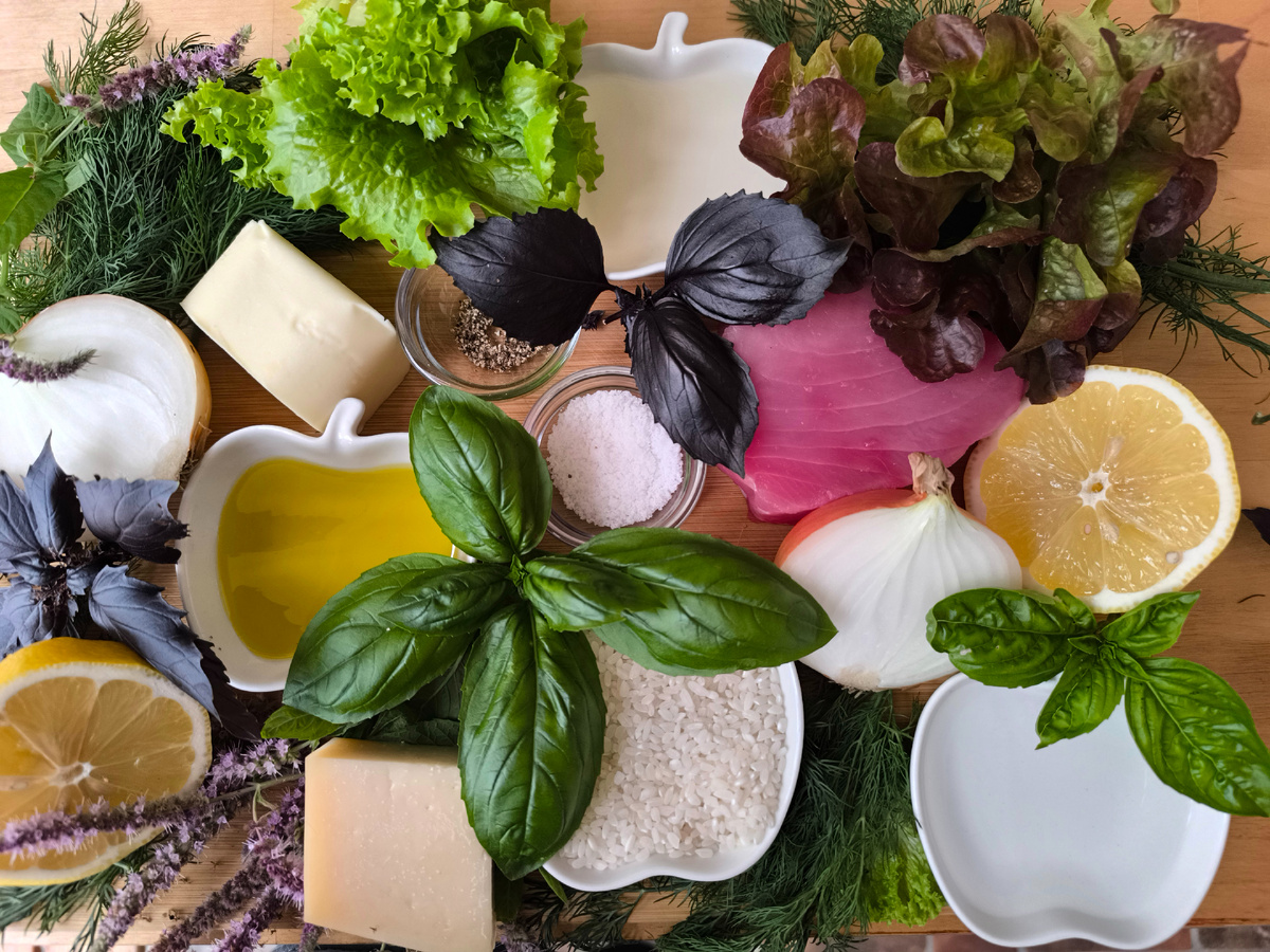Друзья, прошлым летом мы уже показывали вам среднесложный рецепт итальянской кухни тирамису. Оказалось, что тирамису вполне комфортно приготовить на дачной кухне, если есть миксер, достаточное количество мисок и холодильник, ну и нужные продукты разумеется. Доберусь до ноутбука, сделаю ссылочку в комментариях на рецепт. Сегодня у нас на открытой дачной кухне ризотто с тунцом и укропом. Тунец оказался в меню по причине просто гигантской скидки в "Глобусе". И, поскольку тунца ни разу не пробовали по причине очень высокой цены, решили попробовать. Рецепт ризотто с рыбой и укропом взяла из интернета и начала готовить уже много лет назад в период нашего накопления средств на покупку квартиры в Москве. Рис в ризотто был не сорта арборио (специально для ризотто), а обыкновенный кубанский немытый рис по 9 рублей за килограмм в пяти килограммовых мешках из "Ашана". Рыба была самая дешёвая горбуша с рынка на "Тёплом стане". Столовое вино в тетрапаке. И подаренный к празднику кусок пармезана. Кст
