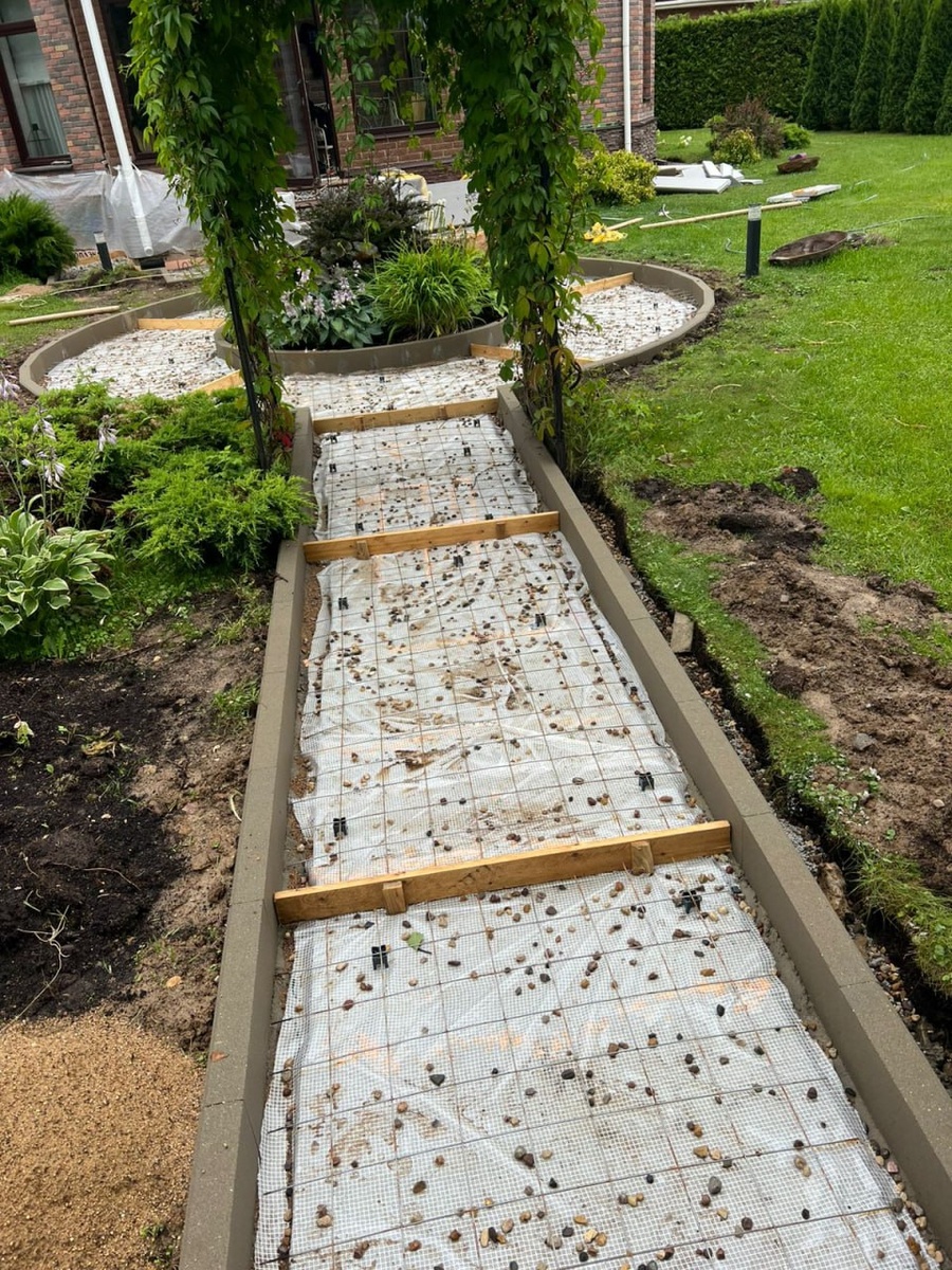 Часть1. Ремонт отмостки, парковки и дорожек. Новое водоотведение. Укладка брусчатки на бетонное основание. КП Спас-Каменка 👷♂️