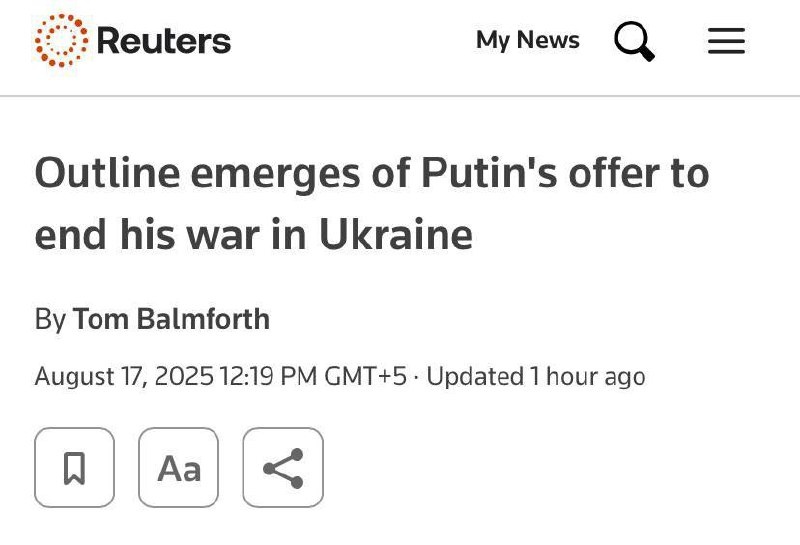 **Reuters опубликовали план Путина по завершению конфликта в Украине:** — ВСУ выйдут из Донецкой и Луганской областей.