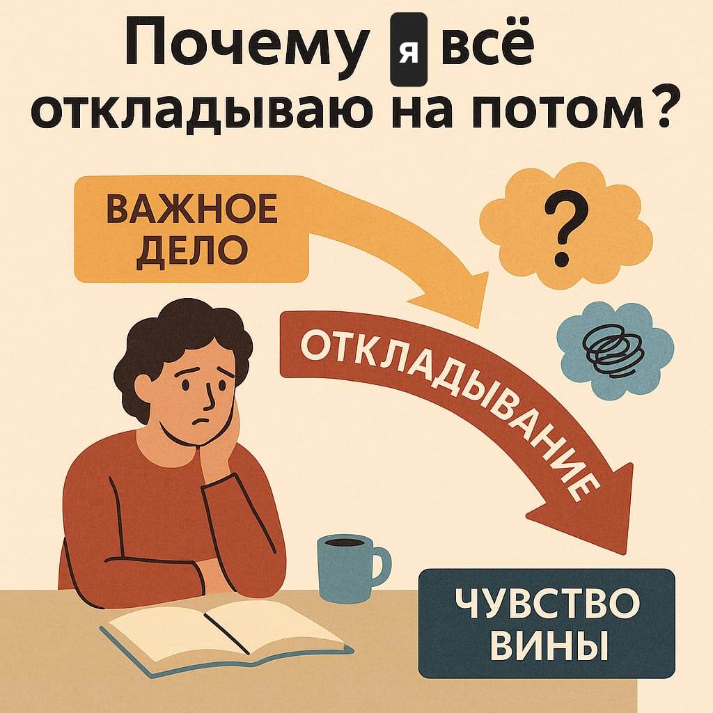 Почему я всё откладываю на потом? Прокрастинация — это не лень, а способ справиться с тревогой. Многим знакомо это состояние: есть важное дело, но мы откладываем его, отвлекаемся на мелочи или бесконечно листаем ленту новостей. А потом накрывает чувство вины и самокритики: