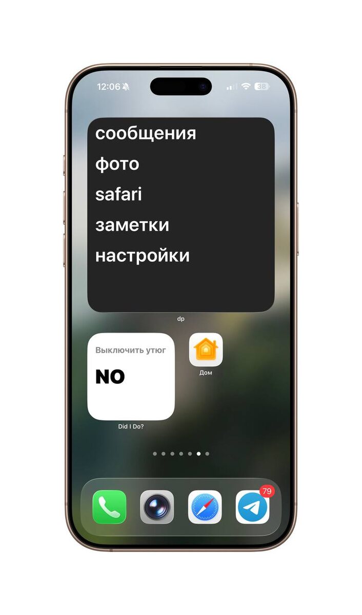 Dumb Phone в AppStore Добавляет минималистичный виджет заменяющий иконки приложений. Идеально для людей со слабым зрением! Каждая строчка открывает соответствующее приложение, можно удалить все иконки, разместив на каждом экране виджеты Dump Phone