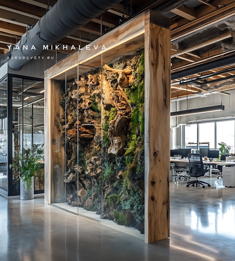 Представьте себе перегородки, которые не давят и не сокращают квадратные метры, а становятся частью живого, дышащего интерьера. В эпоху открытых планировок — квартир-студий и офисов open space — вопрос разделения зоны гостиной, работы и отдыха становится острым. Хочется сохранить свет и воздух, но при этом обрести приватность. Именно здесь на помощь приходит живое зонирование — мягкий способ структурировать пространство с помощью зелени. Глухие стены и тяжёлые перегородки крадут свет, делают помещения статичными и негибкими. Растения работают иначе: они образуют лёгкие границы, формируют уют, легко трансформируются. Более того, такая перегородка никогда не будет «мертвой» — она растёт вместе с вами. Живое зонирование не только про эстетику: Стеллаж-перегородка с растениями. Лёгкое решение для студий и офисов: разделяет зоны, сохраняя свет.