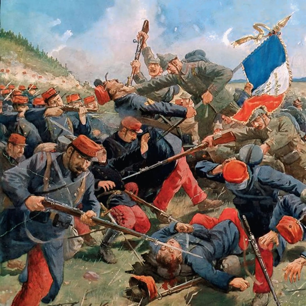 Картина, изображающая французских и немецких солдат в ближнем бою во время приграничных сражений, август 1914 года. Художник: Фриц Герке.