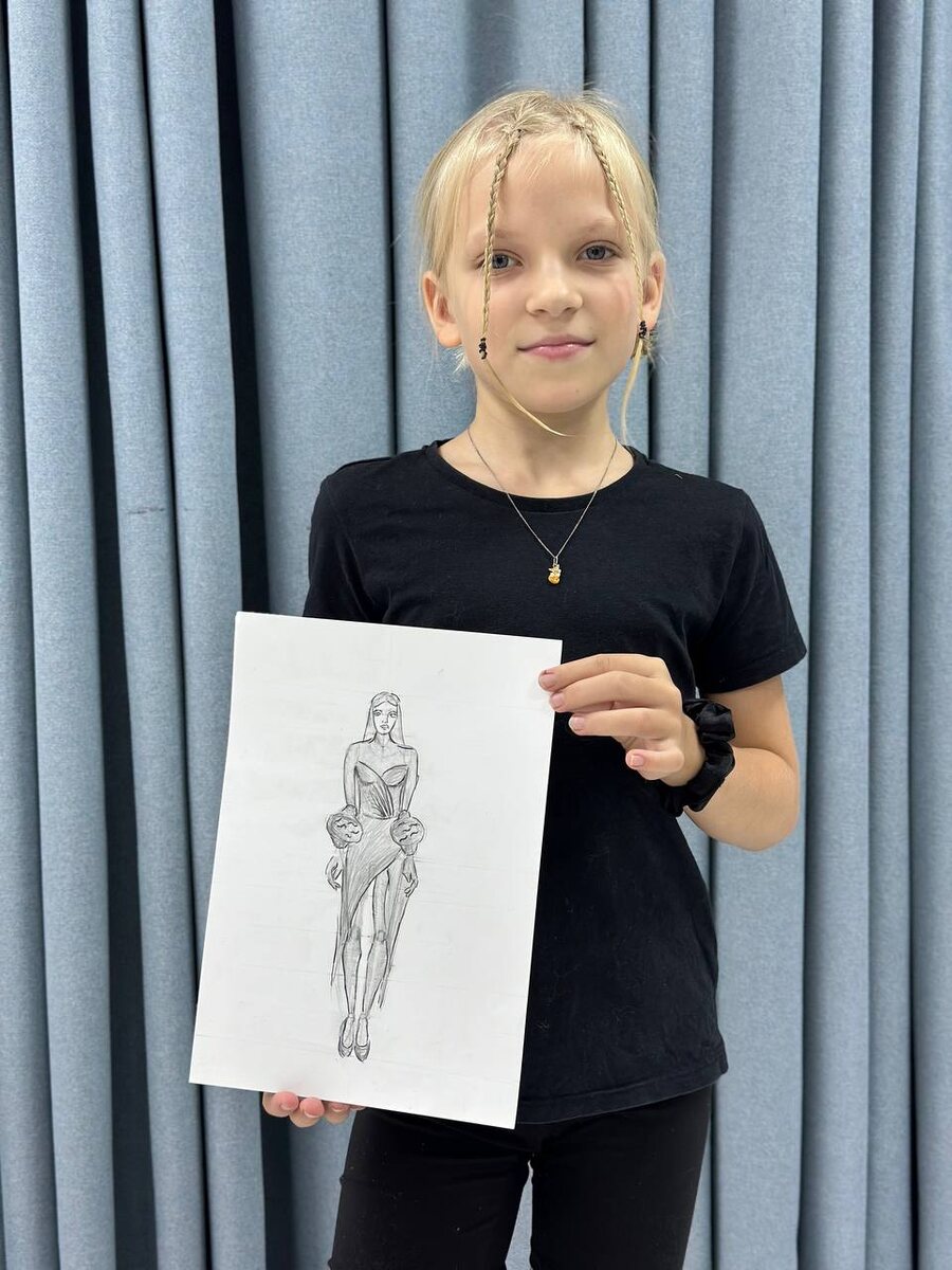 Мы с ребятами погрузились в основы построения тела человека, учились передавать пропорции и динамику. А потом — самое интересное! Каждый создал свой уникальный дизайнерский наряд: кто-то раскрасил эскизы в яркие цвета, а кто-то добавил эффектные акценты линером!