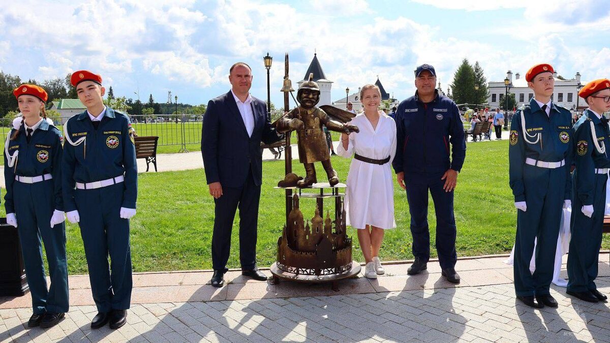 На кануне на Красной площади Тобольского Кремля состоялось открытие фигуры ангела "Оберегающий", представляющего из себя пожарного и символизирующего защиту от огня.