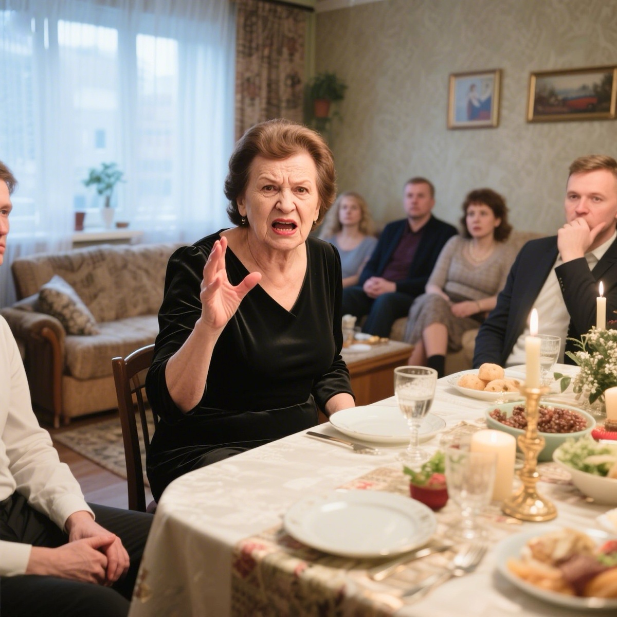 Слова повисли в воздухе. Гости замерли, не понимая, что происходит. Марина побледнела, а Андрей растерянно посмотрел на мать.