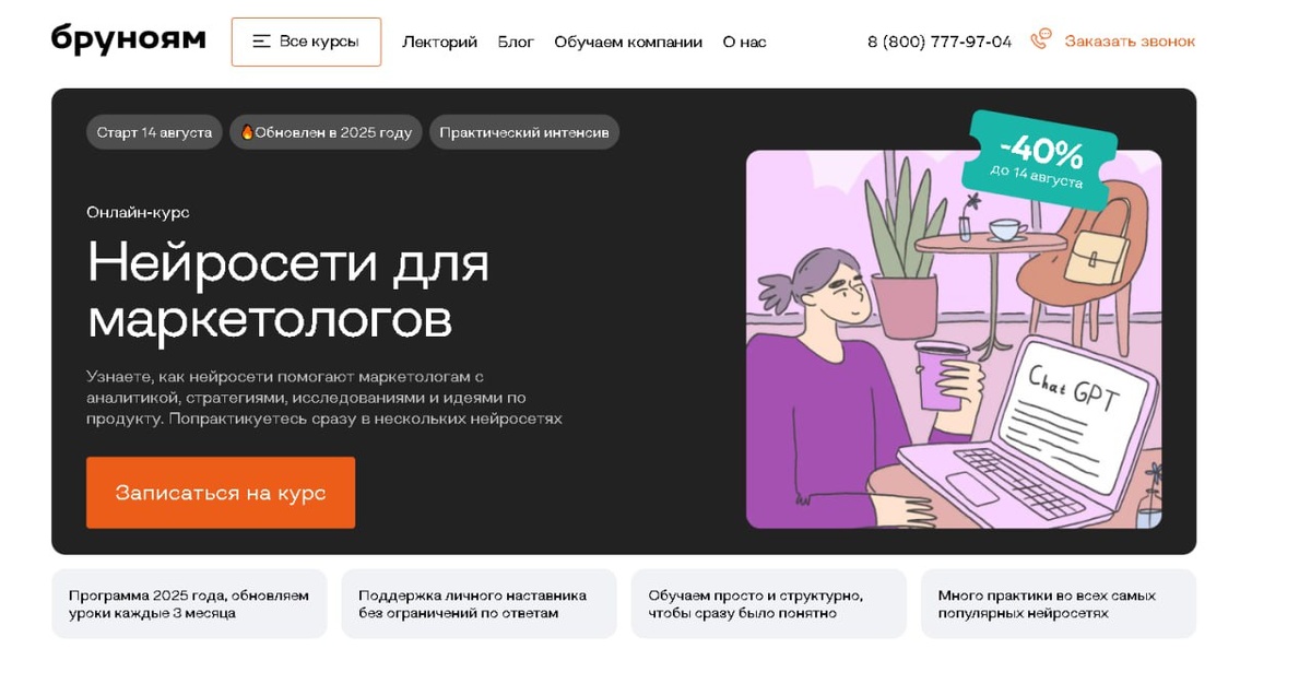 Обучение Неросетям для Маркетинга: топ-9 онлайн-курсов с выдачей сертификата. В Rating Courses собрали лучшие курсы обучения по нейросетям в маркетинге, которые помогут автоматизировать рутинные задачи, улучшить таргетинг и персонализацию, а также повысить эффективность рекламных кампаний.