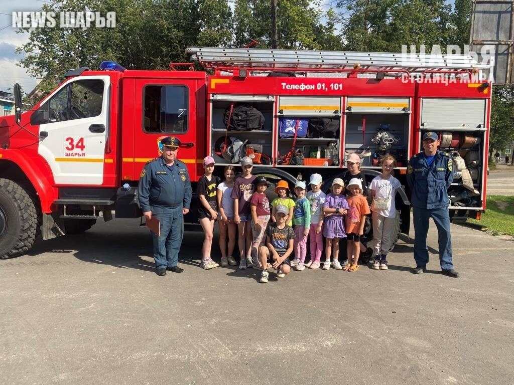 Огнеборцы демонстрируют технику и обмундирование юным шарьинцам