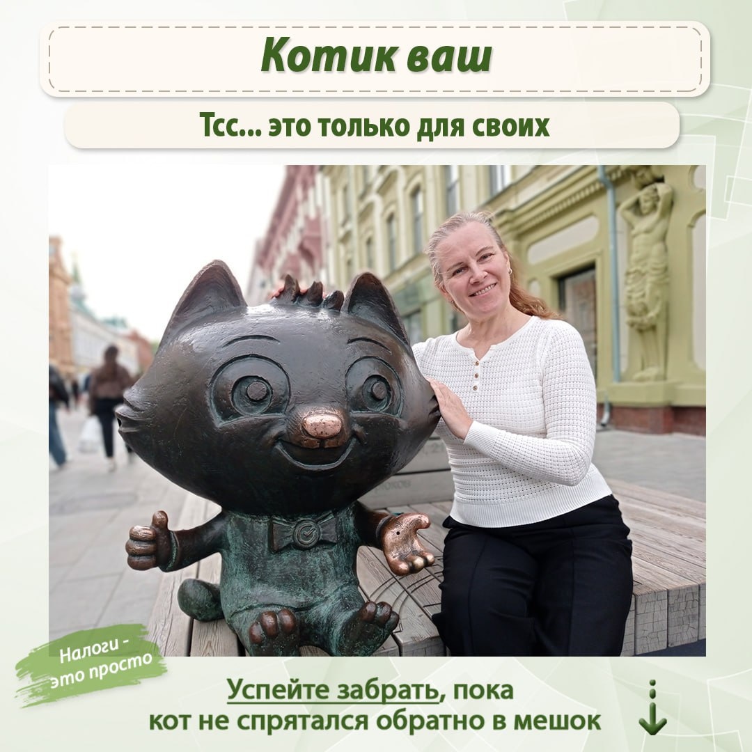А вот и сюрприз 🎁 🐱 Приготовила для вас кота в мешке — денежного и породистого. Не скажу, что вас ждет. Но готовила этот подарок, чтобы вы были в восторге от того, что там найдете. Сегодня котик за 990 ₽. Хотя по-честному, он стоит на порядок дороже. 💁♀️ Понимаю, брать вслепую — волнительно. Но именно такие спонтанные покупки иногда оказываются самыми выгодными. Внутри — ваш личный помощник по налогам. А больше я не скажу 😜 Доступ открыт всего на 3 дня. 👉 Забирайте: https://nalog-prosto.ru/kotvmeshke Потом обязательно напишите, как вам. Только не говорите другим, что внутри. 🤫