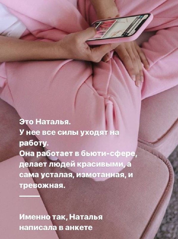 ✔️У Натальи все силы уходят на работу. Она работает в бьюти-сфере, делает людей красивыми, а сама часто усталая, тревожная. ✔️Деньги вроде приходят, но куда они уходят — непонятно. Кредиты, обязательства, бессонница, страх, что в следующем месяце может не хватить даже на жизнь.