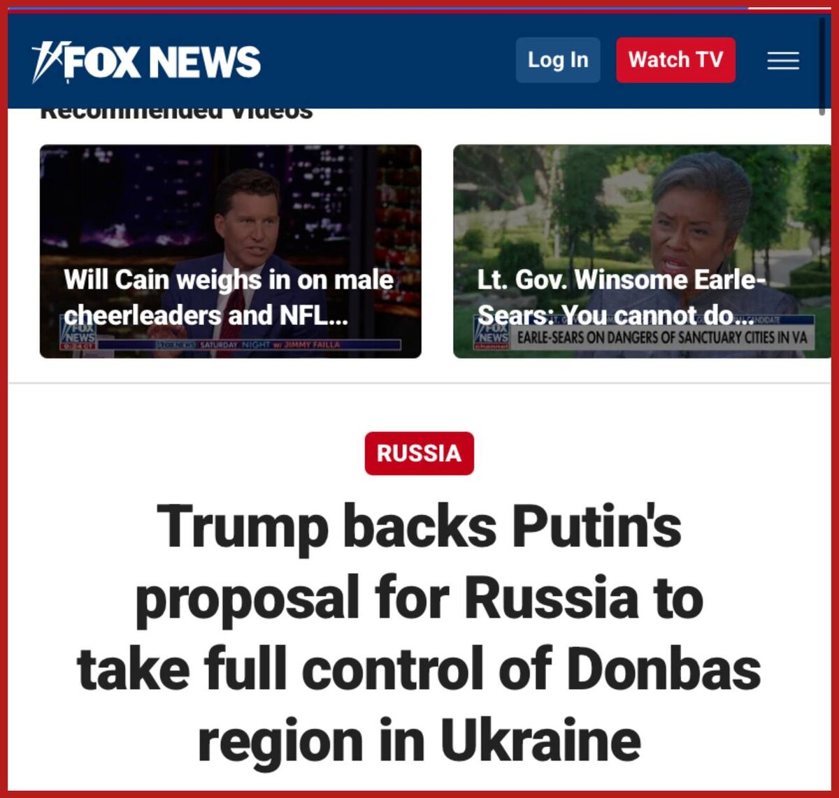 ❗️Трамп поддерживает предложение Путина о том, чтобы Россия установила полный контроль над Донбассом и заморозила линию фронта в других