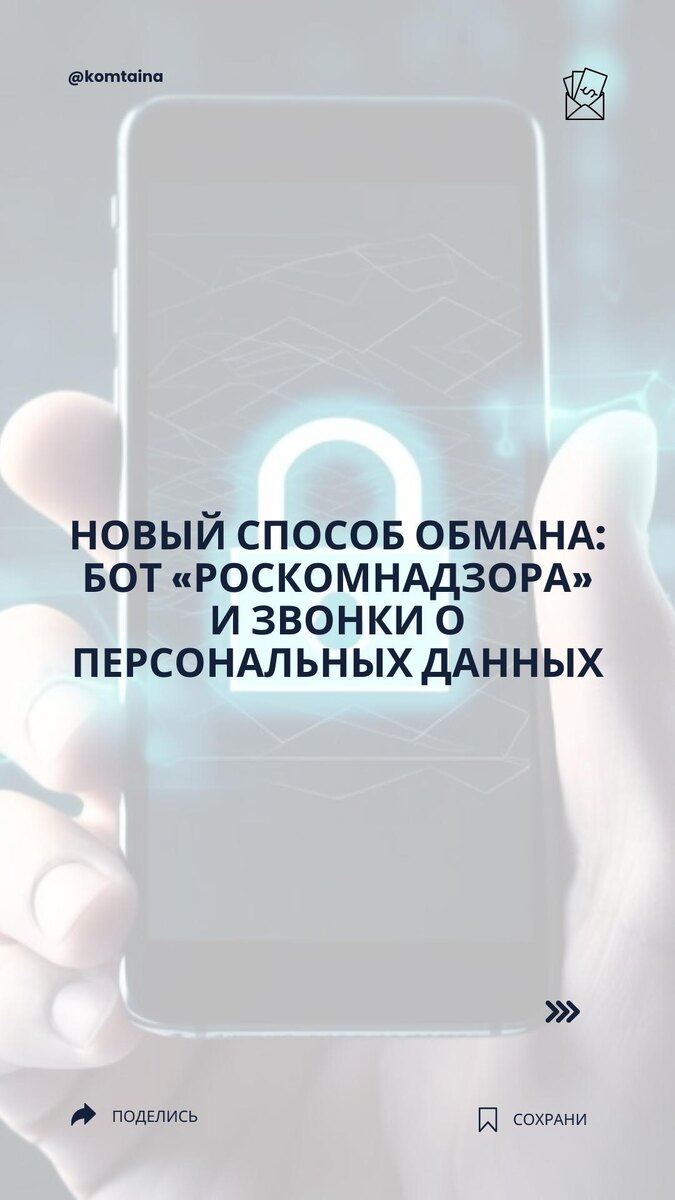 ❗️ Новый способ обмана: бот «Роскомнадзора» и звонки о персональных данных Появилась очередная схема мошенничества, направленная на представителей компаний и индивидуальных предпринимателей. Роскомнадзор официально предупредил: по России распространяется новая волна фальшивых уведомлений якобы от ведомства. Цель — выманить персональные данные через поддельные формы. 👍 А если перепутал? Сейчас везде штрафы, угрозы, законы — не разберёшься. ❤️ Удивительно, что на это до сих пор кто-то ведётся. @komtaina