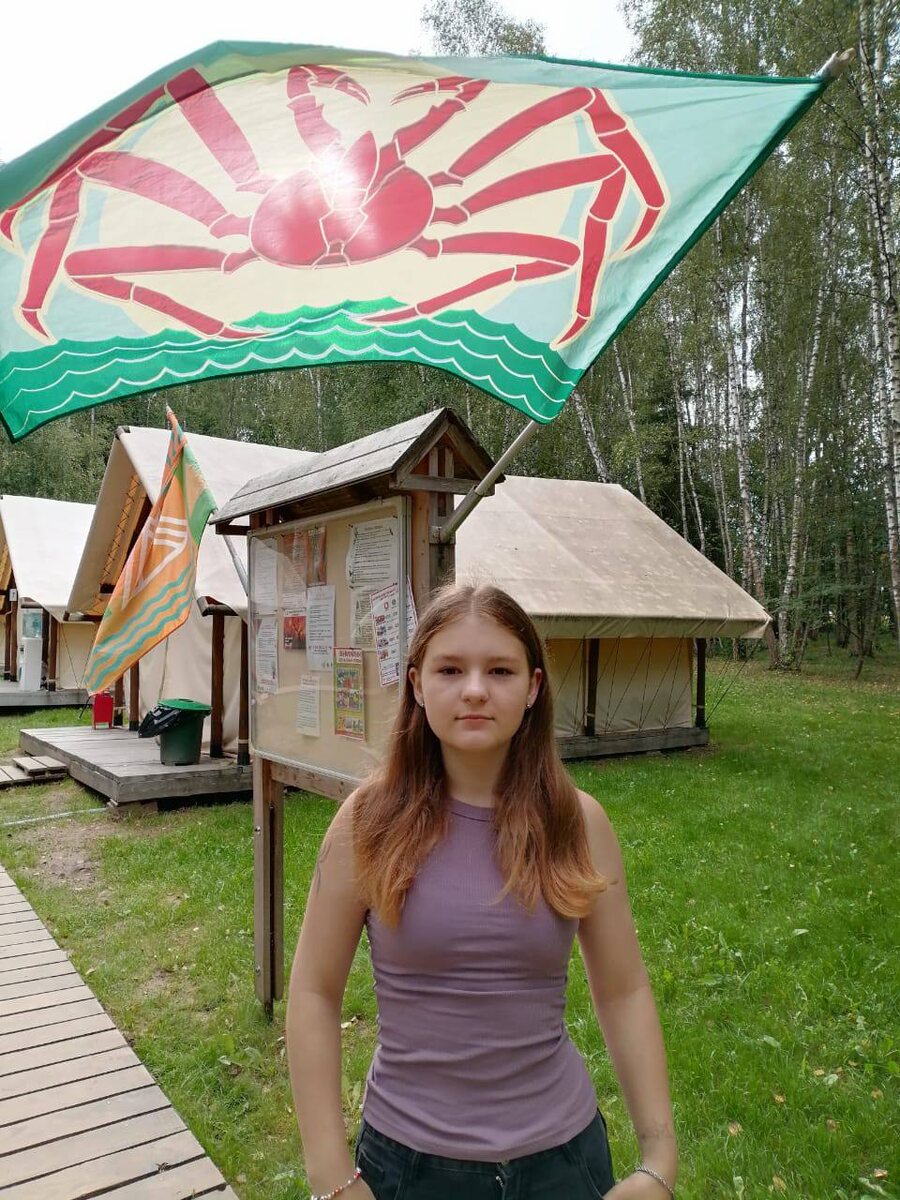 #Геройдня - Анна Донцова🦀 Аня на протяжении всего дня проявляла активность и инициативу, помогая вожатым в сборе ребят. Её внимательность и организаторские способности позволили обеспечить порядок и безопасность в отряде и лагере. Кроме того, она успешно заменила уехавшего члена президентского совета, что стало важным вкладом в нашу дальнейшую победу. По итогам прошедшего собрания, в котором Аня приняла участие, Сахалин занял второе место в рейтинге, что стало настоящим достижением и гордостью для всего отряда!