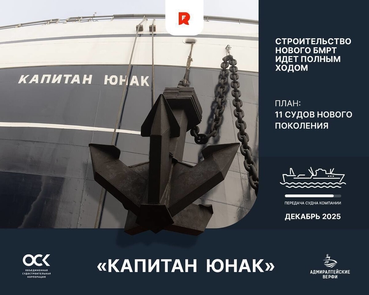 На предприятии ОСК «Адмиралтейские верфи» в Петербурге идет строительство нового супертраулера РРПК «Капитан Юнак». Об этом сообщается в официальном телеграм-канале «Русской рыбопромышленной компании». Большой морозильный рыболовный траулер строит профессиональная команда из 800 основных производственных рабочих, они обеспечивают высокие темпы роста технической готовности судна. Известно, что оборудование машинного отделения уже полностью смонтировано и обвязано системами, установлено якорно-швартовное и большая часть палубного оборудования. «Ведутся работы по монтажу систем в помещениях рыбомучной установки, рыбоперерабатывающей фабрики и рефрижераторной установки, в которых также завершен основной этап монтажа производственного оборудования», – также говорится в сообщении канала РРПК. На осень планируется основной объем пусконаладочных работ. Передача судна компании запланирована на декабрь 2025 года. Ранее мы писали, что НЭС «Академик Трешников» готовится отправиться к Северному пол