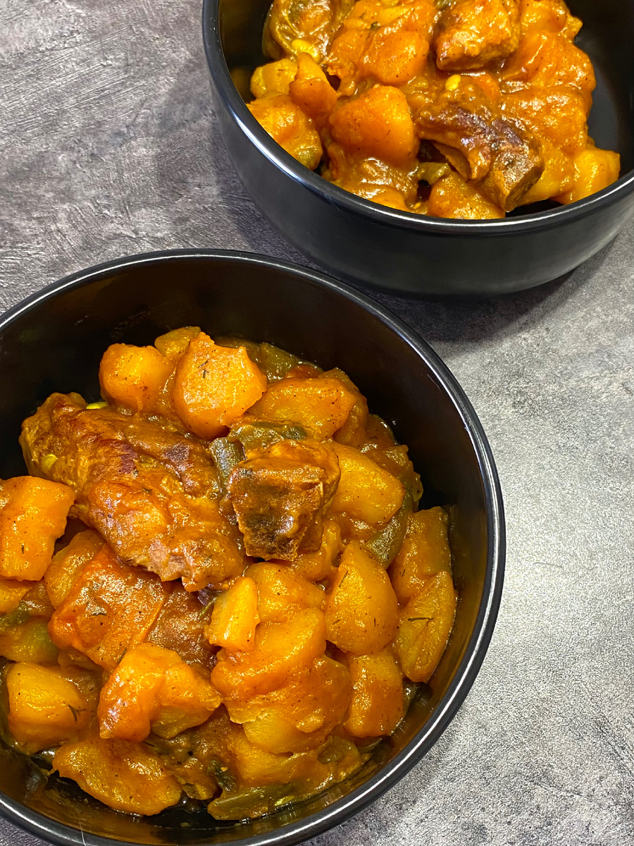 Простой рецепт рагу, когда лень готовить. Нам понадобятся: Первым делом отправляю мясо на сковородку. Добавляю немного воды, накрываю крышкой и оставляю ненадолго протушиться. Пока мясо тушится подготавливаем картофель, лук и морковь. За это время мясо уже протушилось. Теперь убираем крышку и поджариваем мясо до румяного цвета. Добавляем соль, перец и паприку и всё хорошо перемешиваем. Когда наше мясо подрумянилось добавляем в него лук. К луку добавляем немного сахара и ждем пока он станет карамельного цвета. Следом добавляем морковь. Когда лук и морковь поджарились, освобождаем место в середине сковородки. Туда добавляем кусочек сливочного масло и к нему же отправляем томатную пасту, все поджариваем, добавляю немного аджики (смотрите на свой вкус, мы любим поострее, добавлять аджику не обязательно) Далее все перемешиваем и продолжаем готовить на среднем огне. По желанию можно добавить кукурузу или стручковую фасоль, но это не обязательно, без этого получится так же очень вкусно! Да